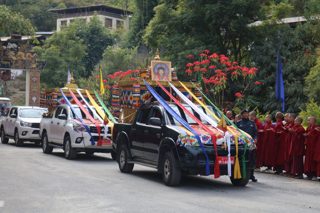 In keeping with the countryโs revered tradition, the Central Monastic Body, led by the Dorji Lopen, arrived at Puna-Dewa-Chenpoi-Phodrang from Thimphu today for their winter residence. The entourage took a night halt at Thinleygang before arriving here today.Hundreds of people received blessings from the sacred relics along the way.The tradition of maintaining separate summer and winter residences dates back to the time of Zhabdrung Ngawang Namgyel in the early 17th century.